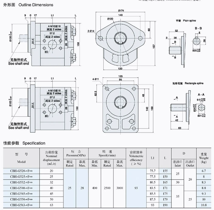 ChangYuan CBHZA Series Hydraulic Pump CBHZA-F23/F25/F28.2/F30/F32/F36/F40 Hydraulic Gear Pump