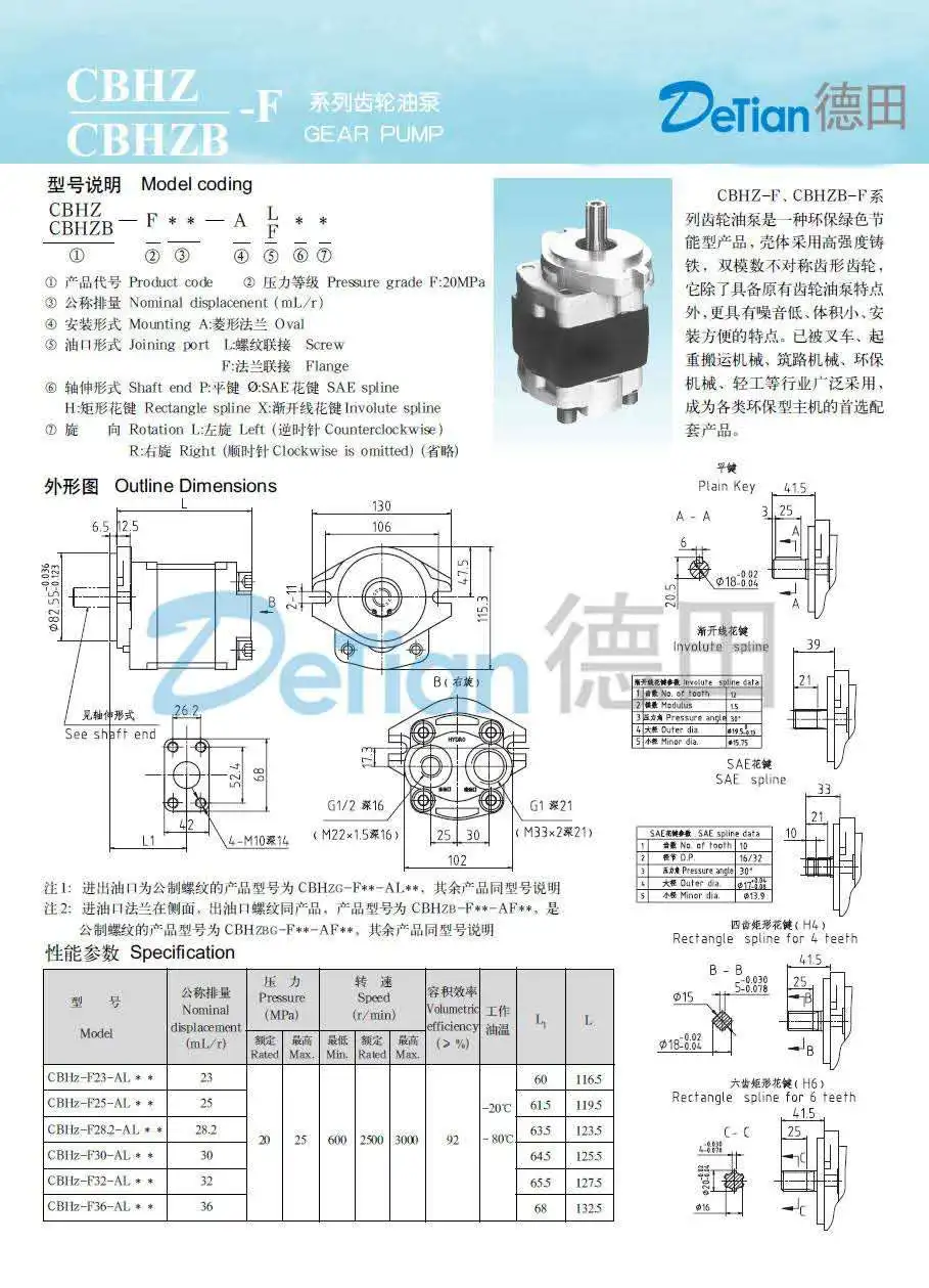 CBHZA Series CBHZA-F23/F25/F28.2/F30/F32/F36/F40 Hydraulic Gear Pump