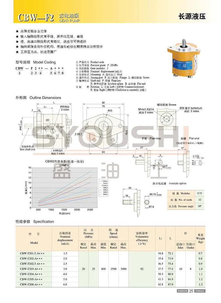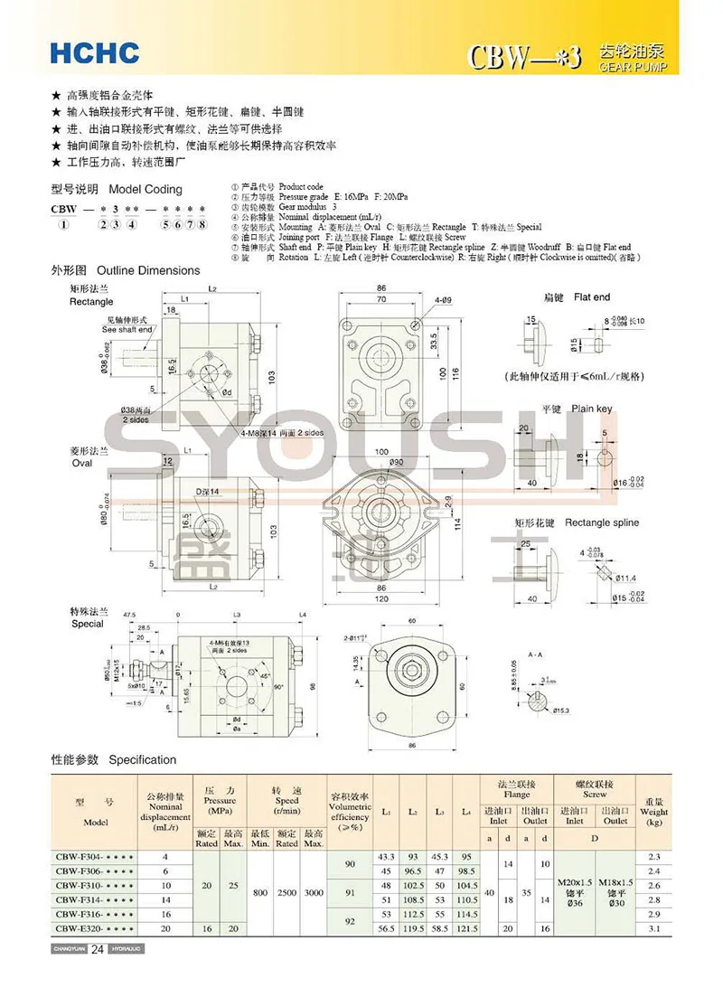 CBW Series CBW-F314-ALP CBW-F316-ALP CBW-F320-ALP CBW-F314-CLP Hydraulic Gear Pump