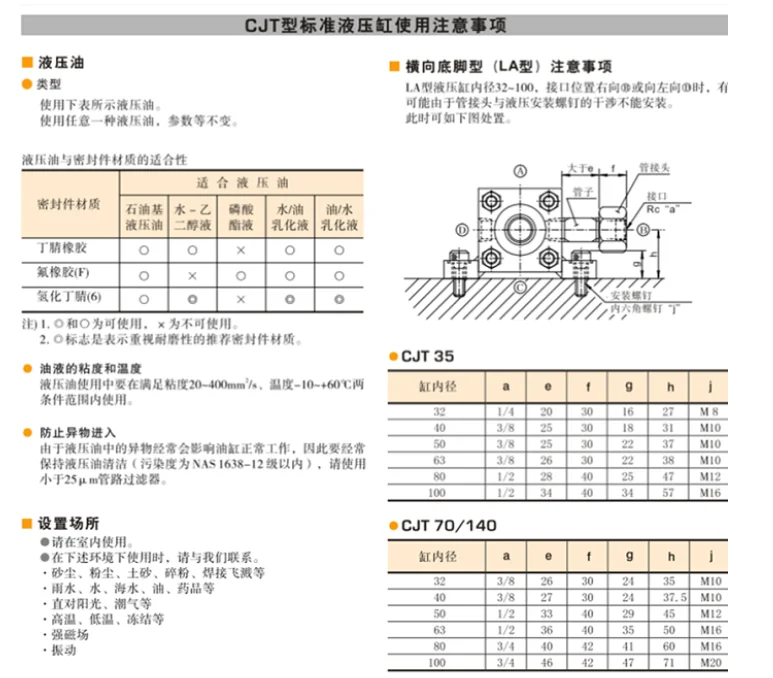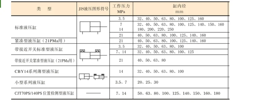 CJT Series Standard Hydraulic Cylinders Models